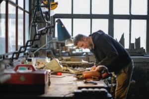 a room filled with lots of metal chairs